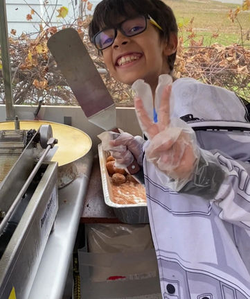 The Donut Cart is run by the owner, Amber, and her two children, Eleanor and Sunil. Together, the three worker bees make your favorite treats! At any given time you can see them in the cart dancing, laughing, and pausing for group hugs. We love being a family-owned and run business, and we'd love to welcome you to our family by sharing what we love - DONUTS!